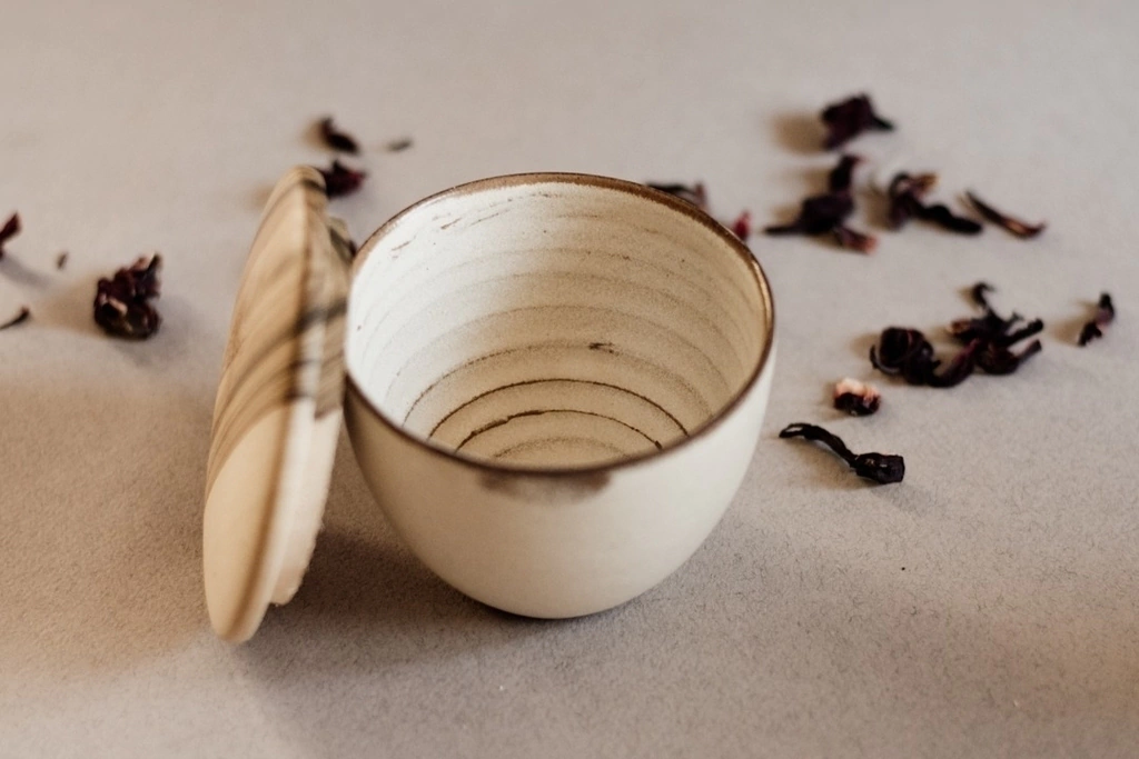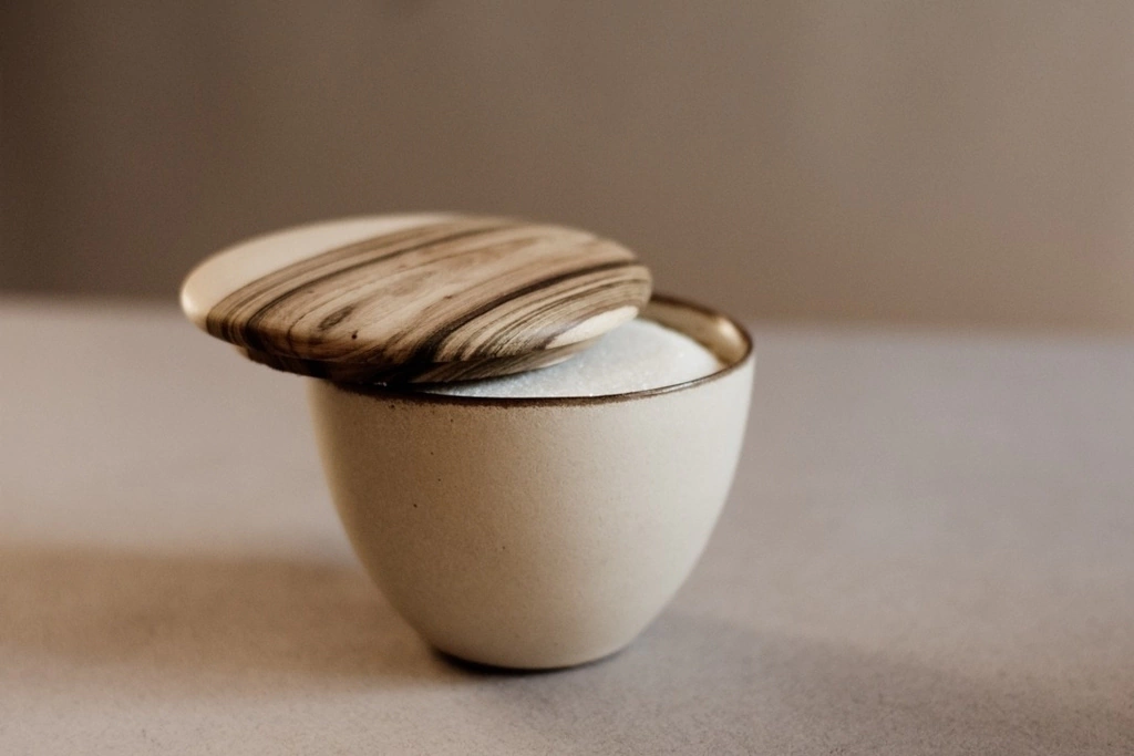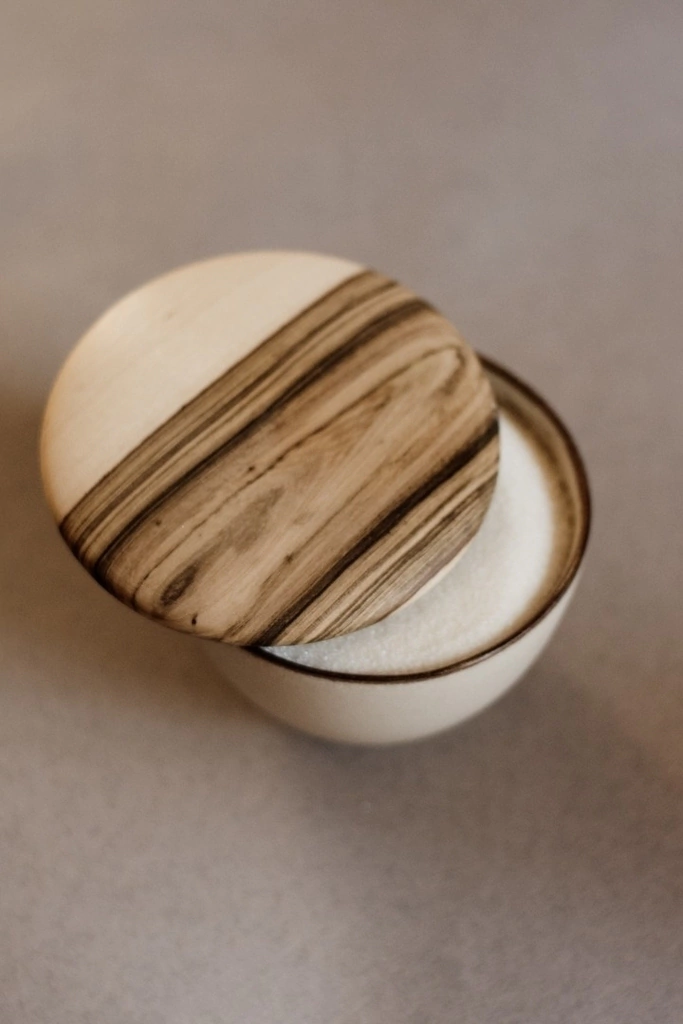 Azucarera realizada en pasta de Gres y tapa de madera, piezas únicas.